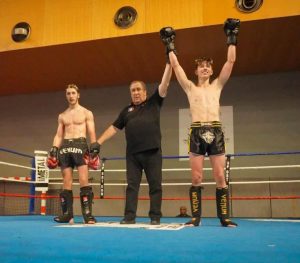Nouveau boxeur en plein contact, Junior -63,5 Kg, Lucas disputait seulement son 2e combat en plein contact. Combatif et volontaire, il s’engage sans retenue. Au 2e round, il reçoit un violent coup au niveau de l’œil, entrainant un arrêt médical.